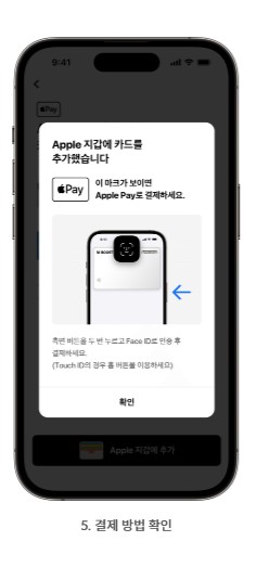 사용법은 아이폰 측면의 버튼을 두번클릭하고 페이스인증 후에 카드리더기 가까이 들고 있으면 됩니다.