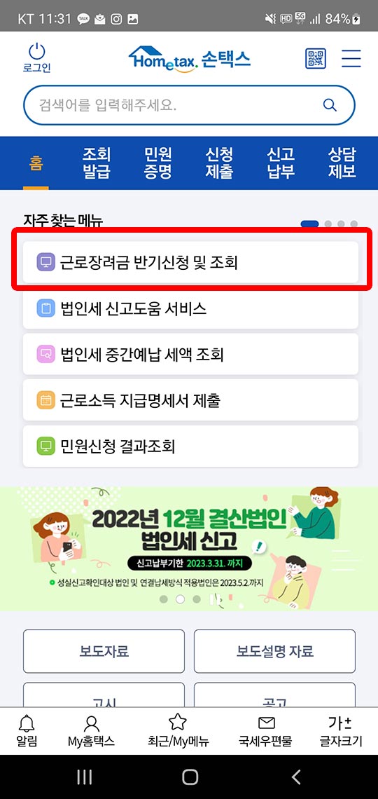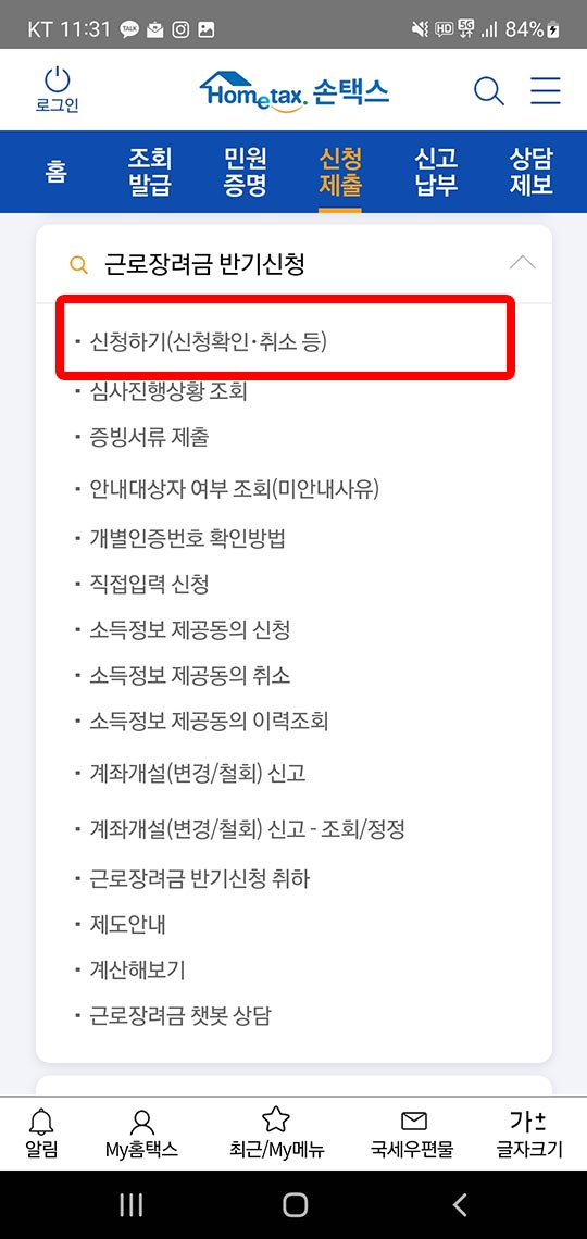 근로장려금 모바일 신청 바로가기