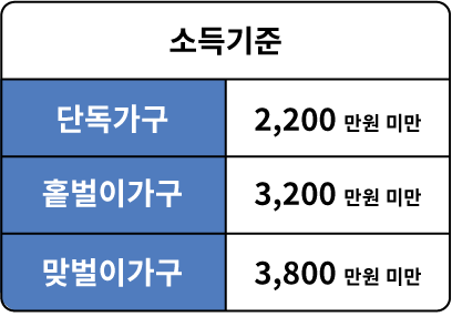 맞벌이가구: 신청자 또는 배우자가 총급여액 300만원이상인가구.