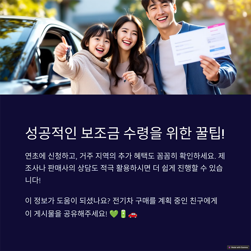 2025년 전기차 보조금 신청 방법, 이제 좀 더 명확해지셨나요? 매년 정책이 바뀌면서 헷갈리는 부분이 많지만, 꼼꼼하게 준비하면 큰 혜택을 받을 수 있습니다. 전기차는 초기 비용이 부담될 수 있지만, 보조금과 유지비 절감을 고려하면 장기적으로 경제적인 선택이 될 수 있어요. 혹시 더 궁금한 점이 있다면 댓글로 남겨주세요! 여러분의 경험도 함께 공유하면 더 많은 사람들이 유용한 정보를 얻을 수 있겠죠? 😊 지금이야말로 친환경 전기차로 전환할 절호의 기회! 보조금 신청 놓치지 마시고 꼭 챙기세요! 🚗⚡